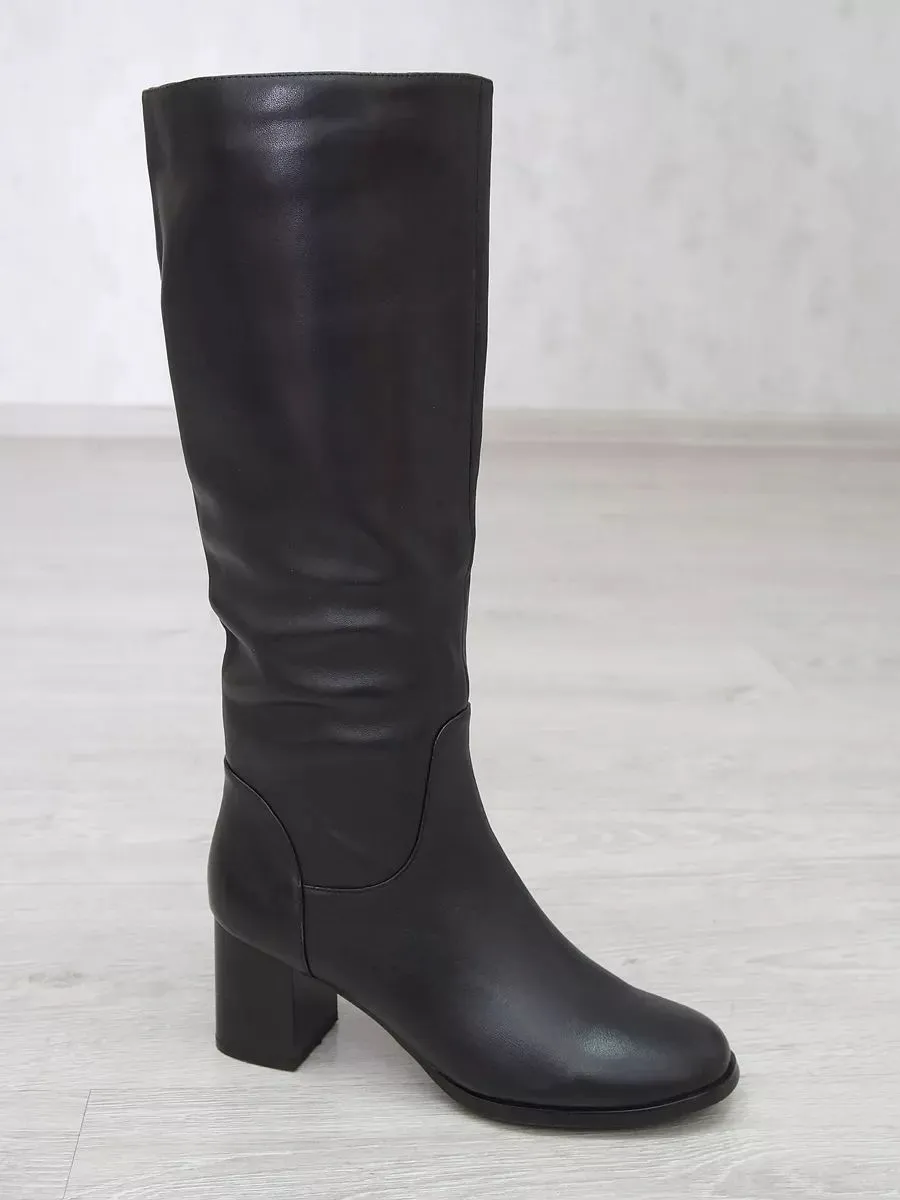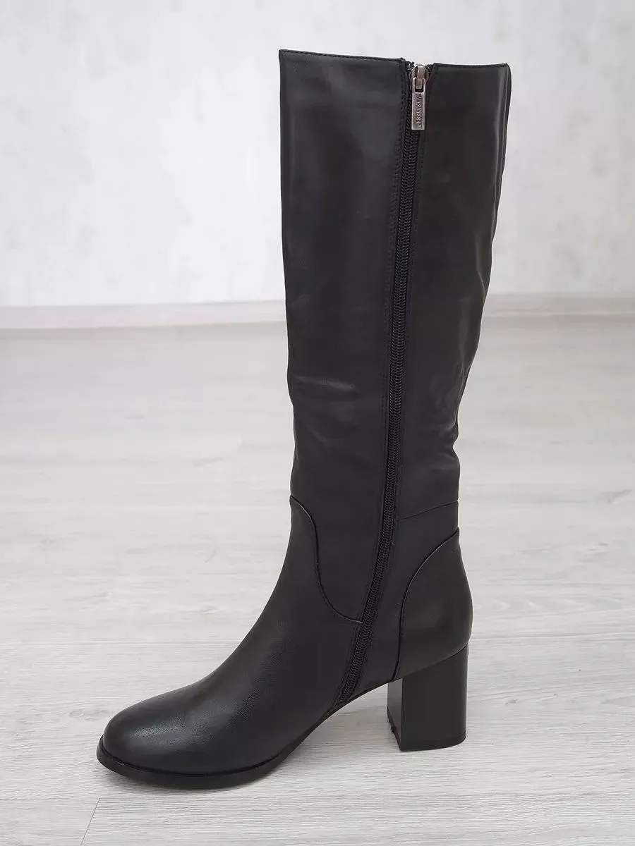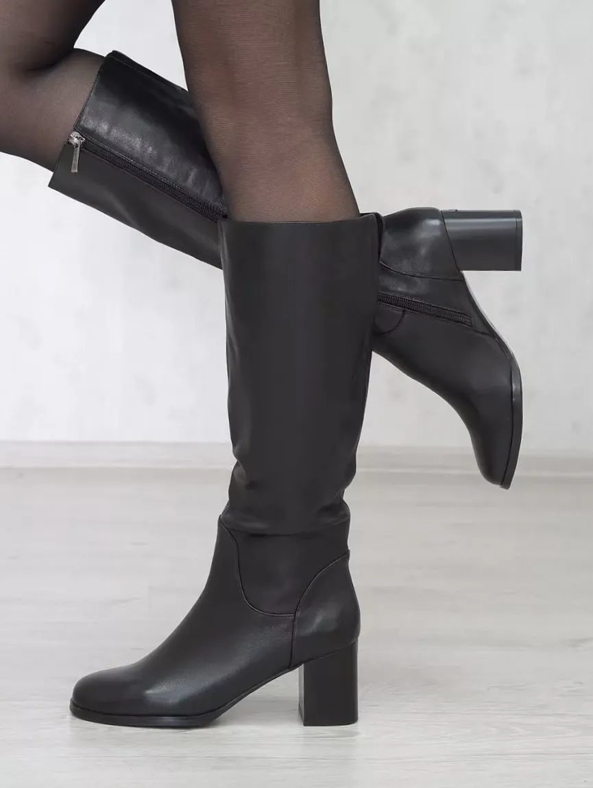 Женские демисезонные сапоги на каблуке в классическом черном цвете.Сапоги женские выполнены из натуральной кожи, которая легко адаптируется к форме стопы и создаёт ощущение лёгкости и удобства. Подклад и стелька выполнены из натуральной байки, расположенной по всему голенищу, что доставит Вашей ноге приятные мягкие ощущения во время носки. Подошва выполнена из ТПУ. Этот материал имеет хорошую теплостойкость, это позволит сохранить тепло даже в самую холодную погоду.