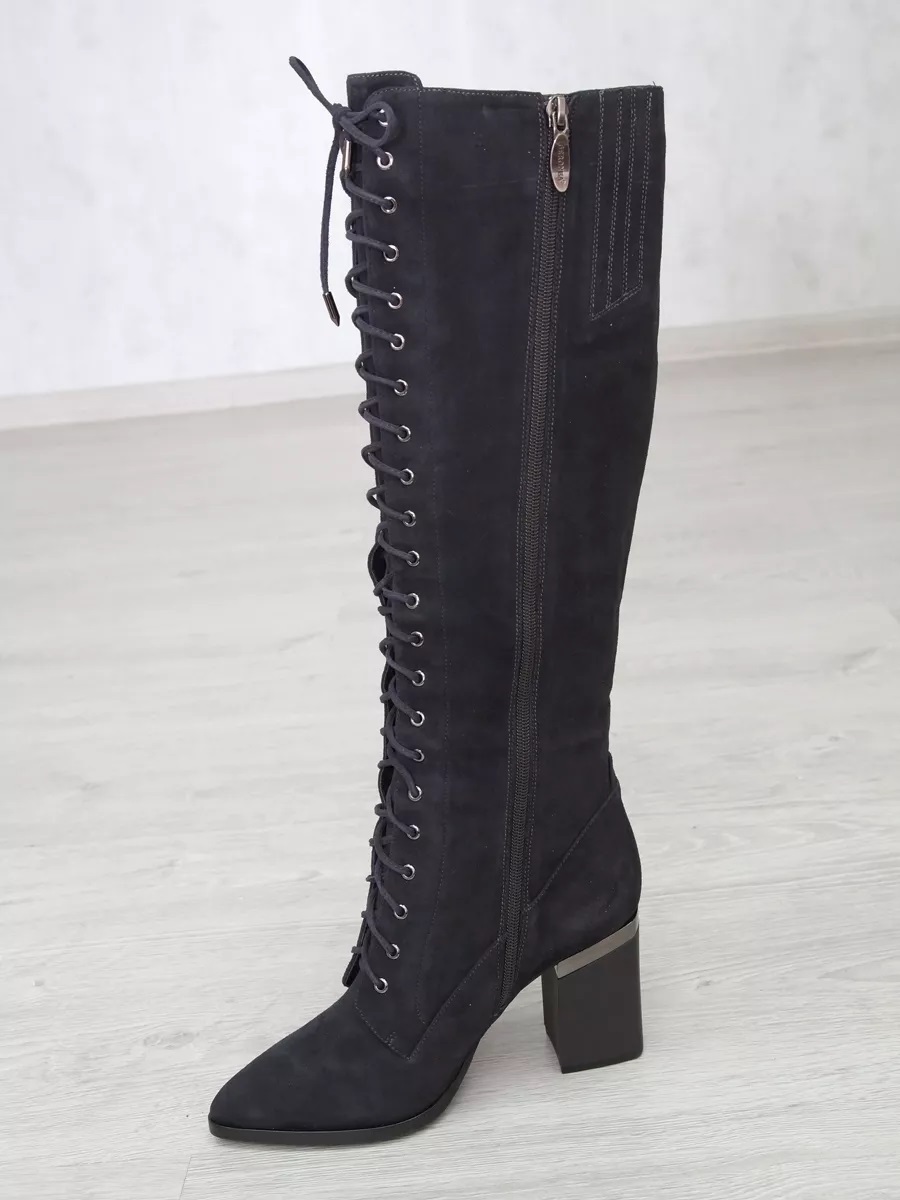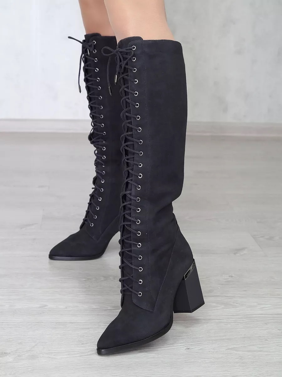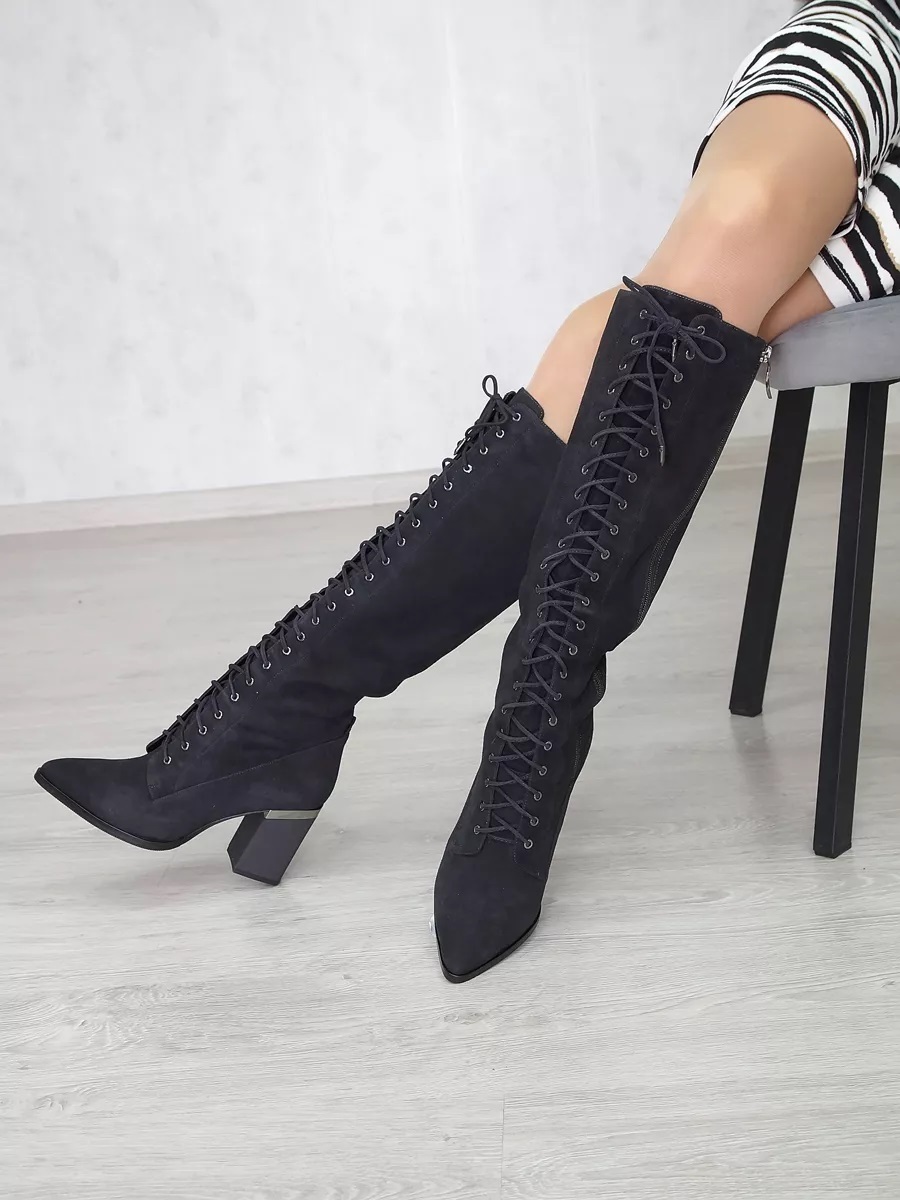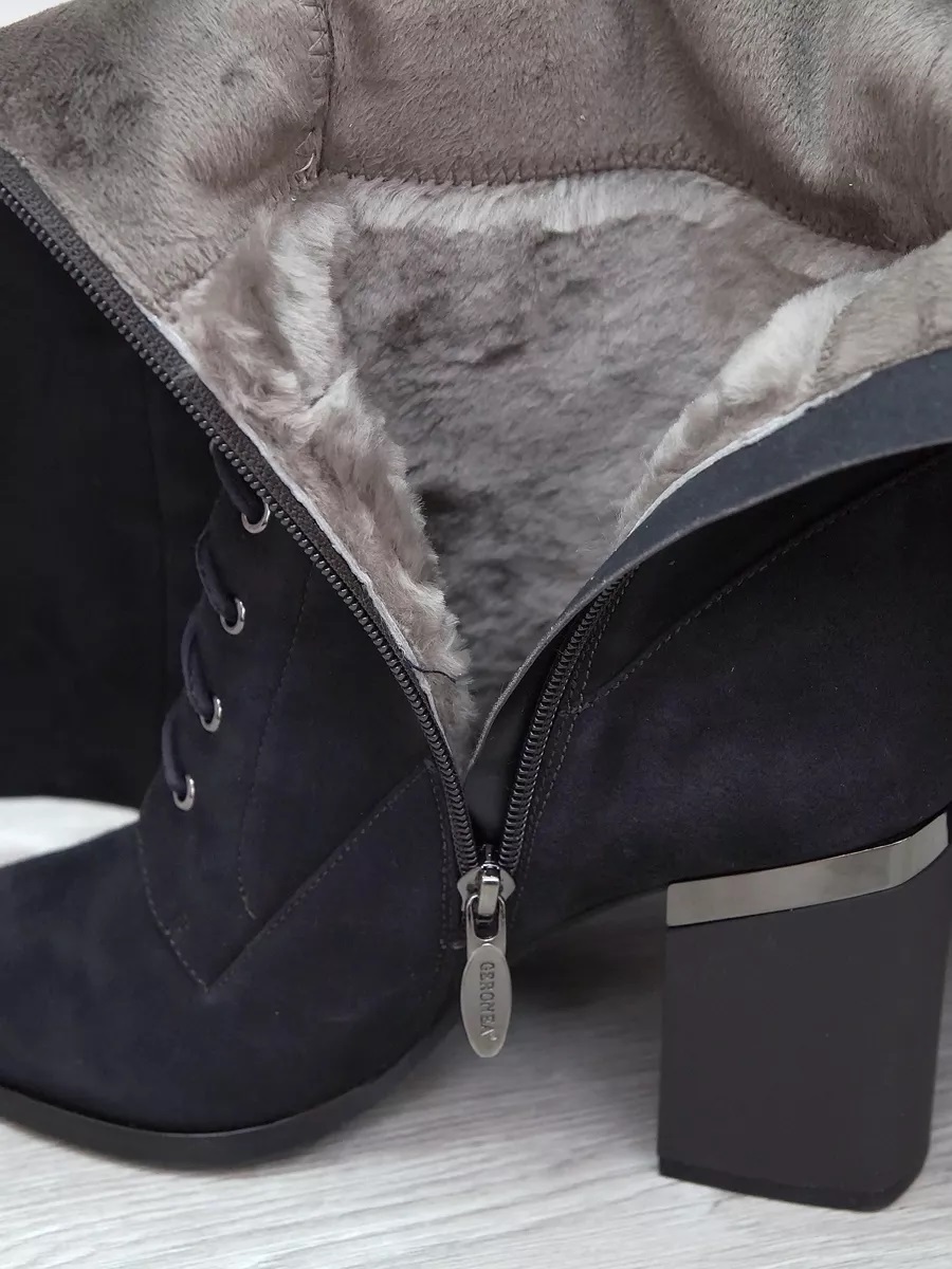 Представляем Вам женские зимние темно-серые замшевые сапоги на каблуке с острым носом. Подклад выполнен из евромеха (натуральный мех до уровня щиколотки) и натуральной байки, расположенной по всему голенищу, что доставит Вашей ноге приятные мягкие ощущения во время носки. Натуральный мех надежно удерживает тепло внутри, впитывая естественную влагу стопы. Высокое качество материалов - то, что выделяет эти зимние женские сапоги. Натуральная замша не только способствует комфорту в эксплуатации, но и не требует трудоемкого ухода, надолго сохраняя первоначальный внешний вид. Подошва имеет хорошую теплостойкость, это позволит сохранить тепло даже в самую холодную погоду. С внутренней стороны обуви находится молния, а спереди - шнурки, что позволит Вам легко надевать и снимать сапоги. Элегантные черные женские сапоги на шнурках - подойдут для походов в офис, мероприятий и для прогулок по городу. Модель удачно дополнит зимний образ.